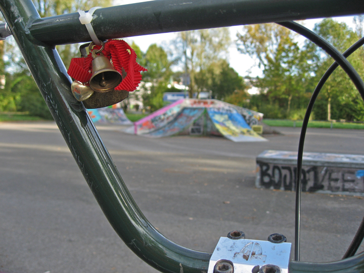 Nachdem ich mir BMX-Videos am Sonntagmorgen auf Youtube beim Kaffee trinken angeschaut hatte, pumpte ich erst mal Luft in die Reifen vom grünen Glöckchen (BMX). Meine morsche Antriebseinheit hatte ich brav beidseitig mit Bandagen ausgestattet.