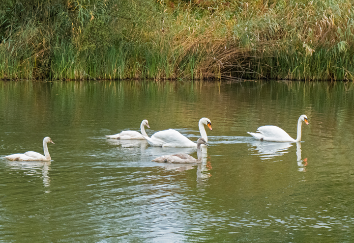 Die niedlichen Schwanenkinder waren noch recht klein und wahrscheinlich noch nicht Flüge, ein bisschen spät zu dieser Jahreszeit.