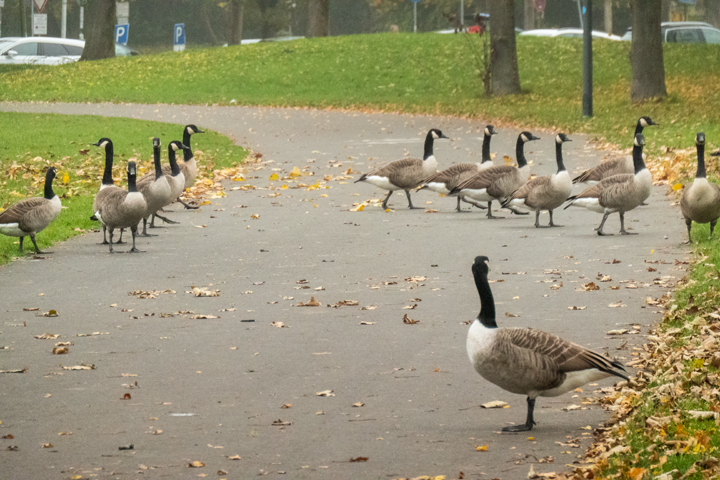Ich finde diese Begegnungen immer wieder schön, zumal ich mir als Kind nie gedacht hätte als Oma, mal durch eine Kolonie von Kanada- und oder Graugänsen durch zu fahren.