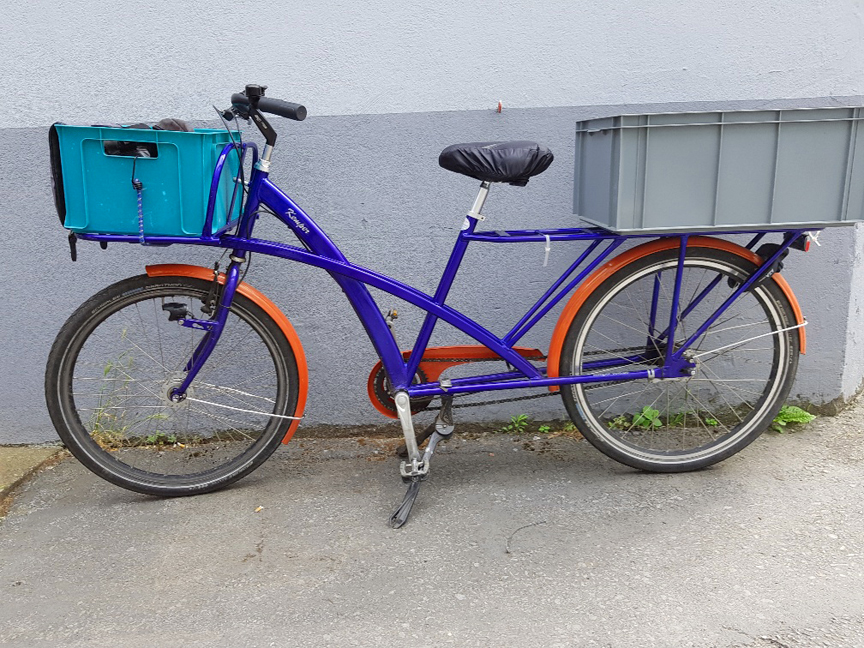 Der blaue Lastesel ist das Fahrzeug gewesen, womit ich die Schermaschine und weitere Hilfsmittel transportiert hatte.
