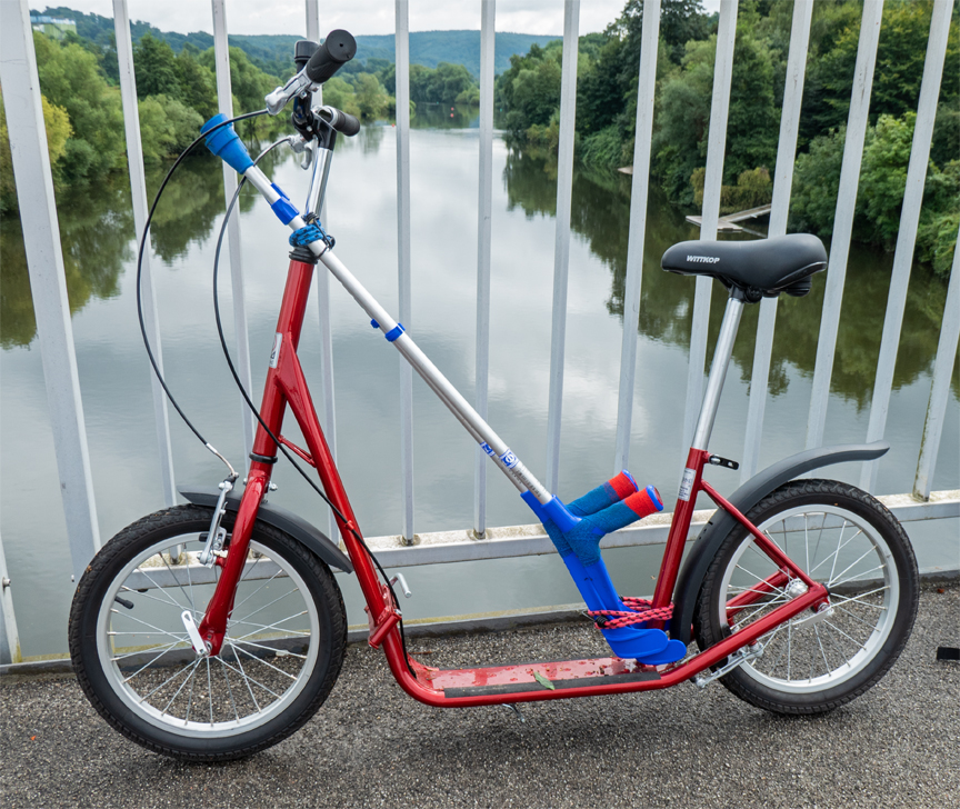 Als Mensch mit erheblicher Gehbehinderung ist dieses Ding eine Wohltat, da man sein Gewicht auf dem Sattel platzieren kann und auch nur mit einem Bein wie bei einem Roller anschubs geben kann. Auch Anstiege lassen sich damit bewältigen, je steiler es wird, umso anstrengender wird es dann aber natürlich.