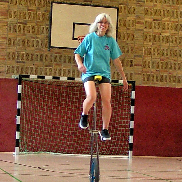 Gesagt getan, das alte Einrad wurde aus dem Keller gekramt. Es folgten Beitritte in zwei Einrad-Vereinen und siehe da, ich wurde immer besser.