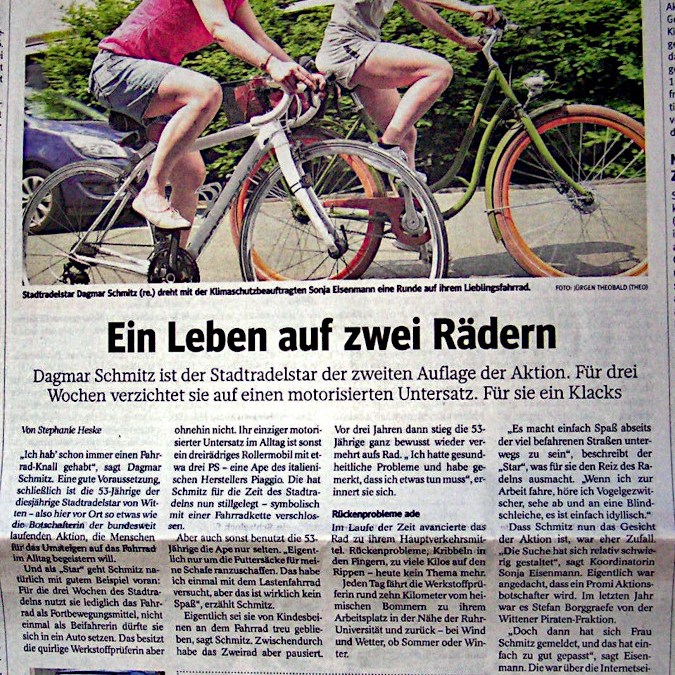 Im Jahr 2018 hatte ich als Stadtradeln-Star beim Stadtradeln in Witten teilgenommen und anschließend meinem letzten motorisierten Vehicle (APE 50) endgültig den Laufpass gegeben.